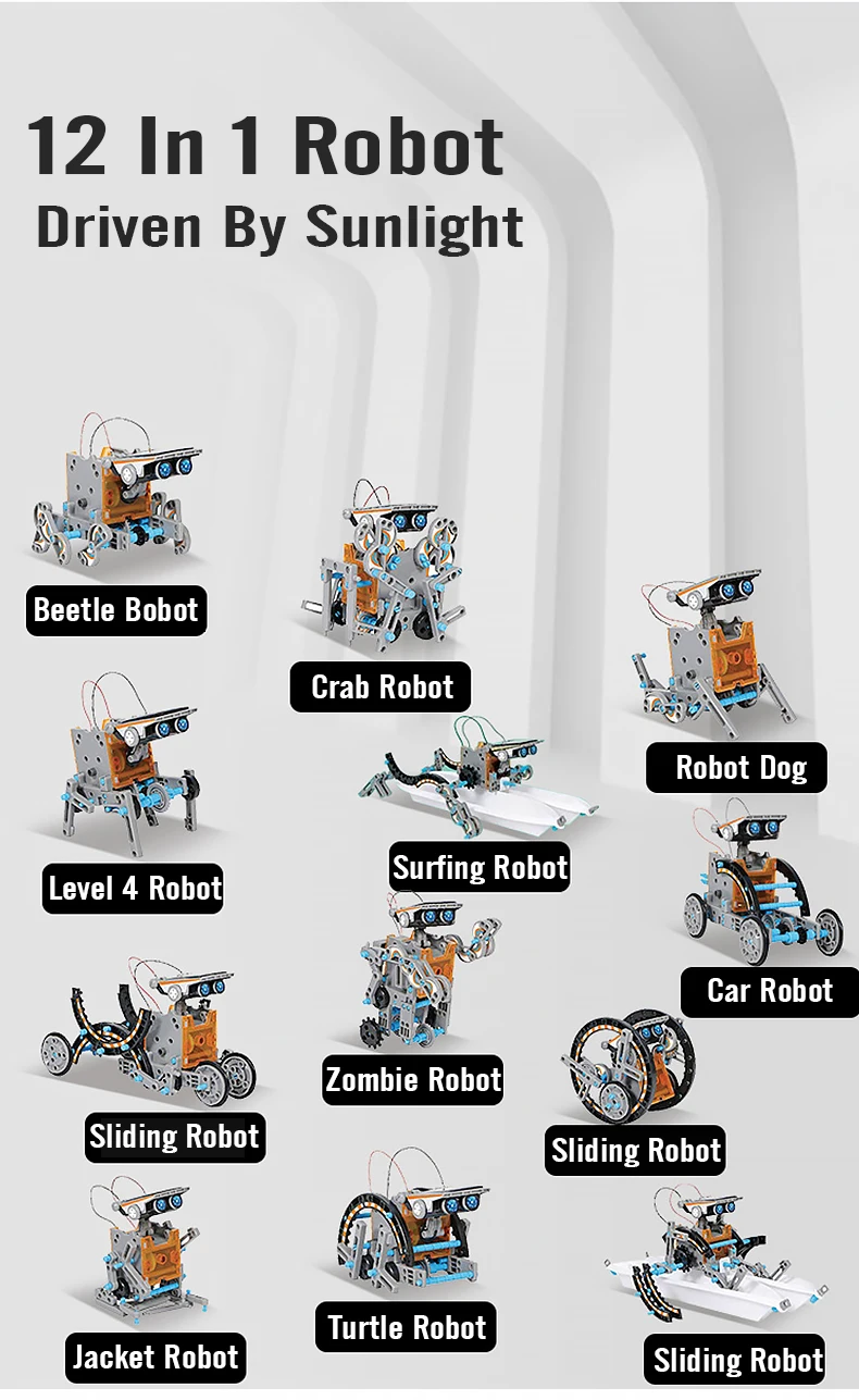 12-in-1 Buildable Robots: The kit includes components to assemble 12 different robots, each with distinct designs and movements, providing hours of educational entertainment.