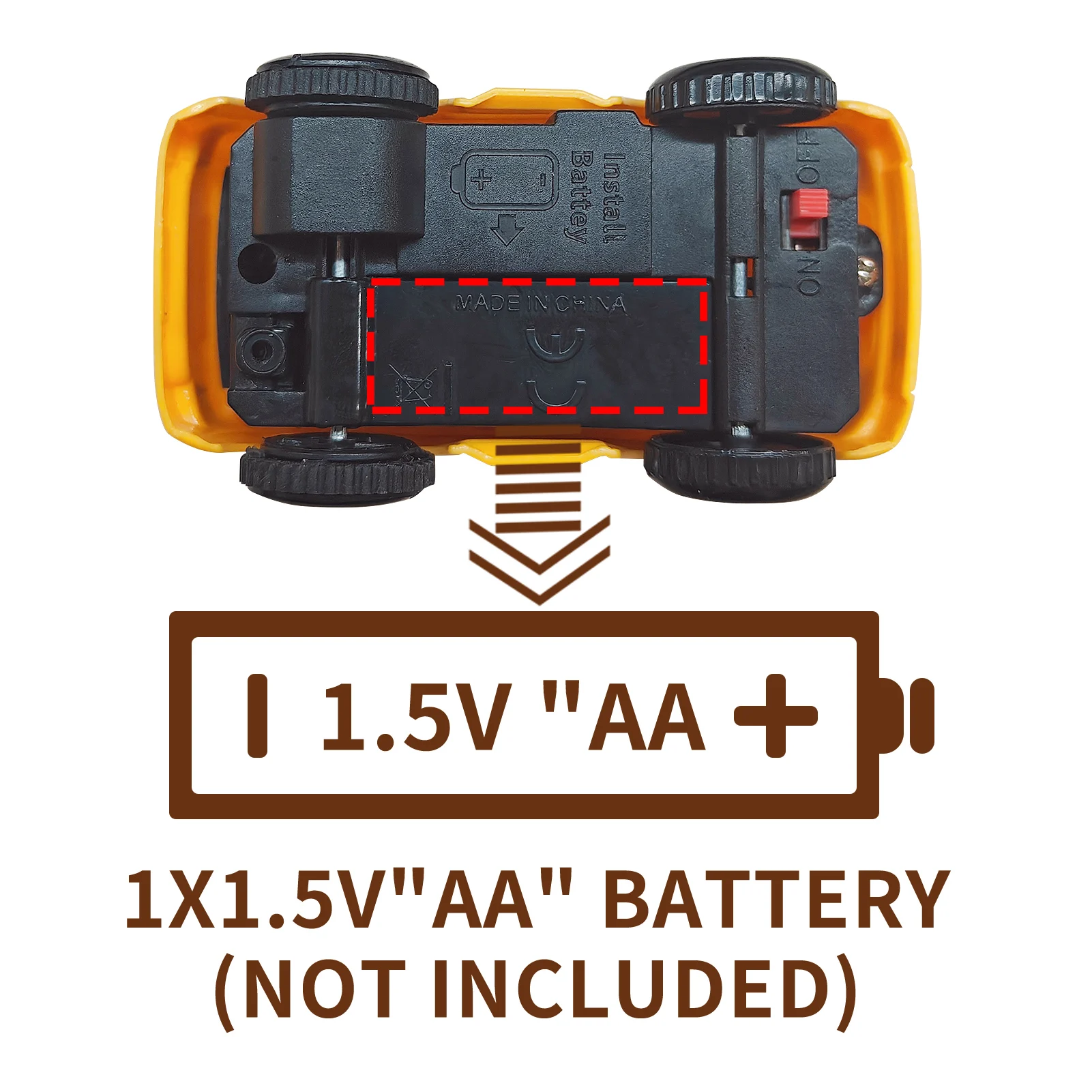 - Battery: Alkaline AA (for car functionality)
