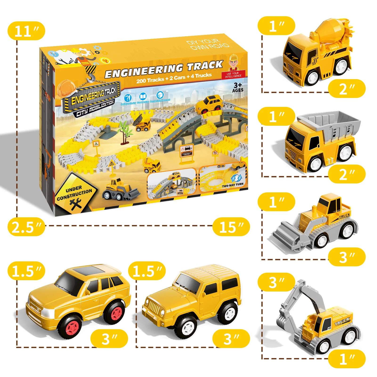 - Set Includes: 236 track pieces and 6 cars